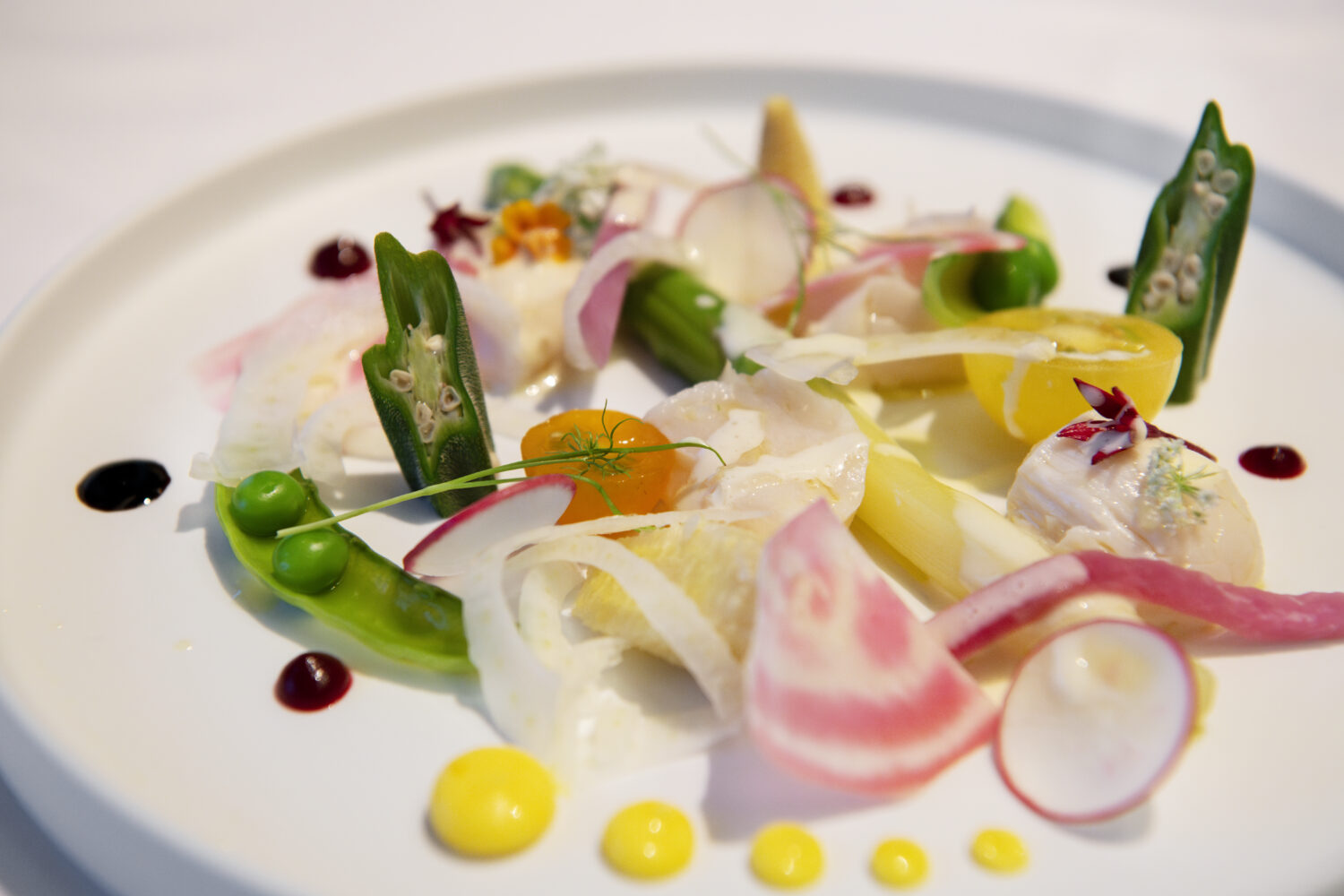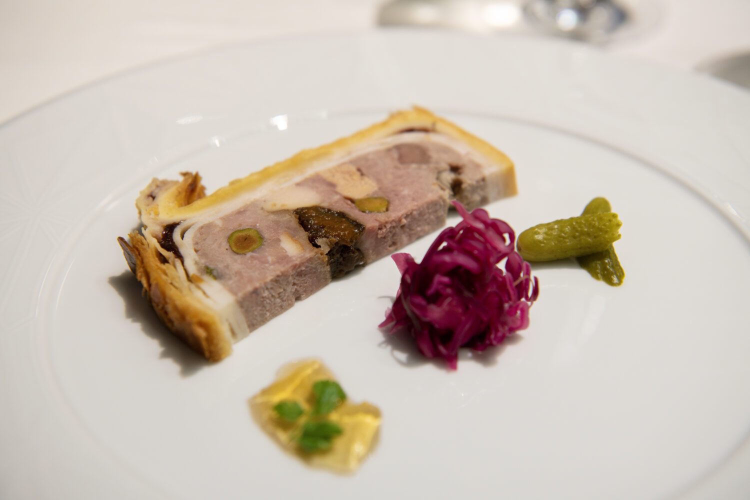予約は必要だが、これが無料で楽しめるのか!と驚いたのが、フランス料理の「ノブレス」。4,6,8品のコースもしくはアラカルトから選べると聞いて、欲張って8品のコースをチョイスしたが、味はもちろん目でも楽しめるコースは、めくるめく食のドラマを見るような時間だった。肉や魚もおいしいが、付け合わせの野菜も絶品で、飛鳥Ⅲでズッキーニのおいしさに目覚めたほど!