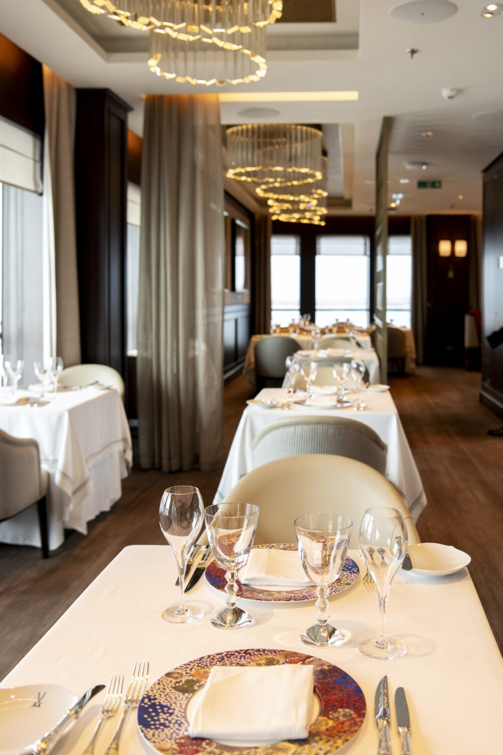 初めての乗船は新たな船内施設にキョロキョロしていたばかりだが、その間も飛鳥Ⅲの船内は落ち着いた雰囲気に満ちていた。それと言うのも、この船は揺れをまったく感じないのだ。出港のときも、風景を見ていなければ、いつ港を離れたのかもわからないほど。航行中の細かな振動もまったく感じず、出港早々、最新のテクノロジーがもたらす快適なクルーズに驚いた。