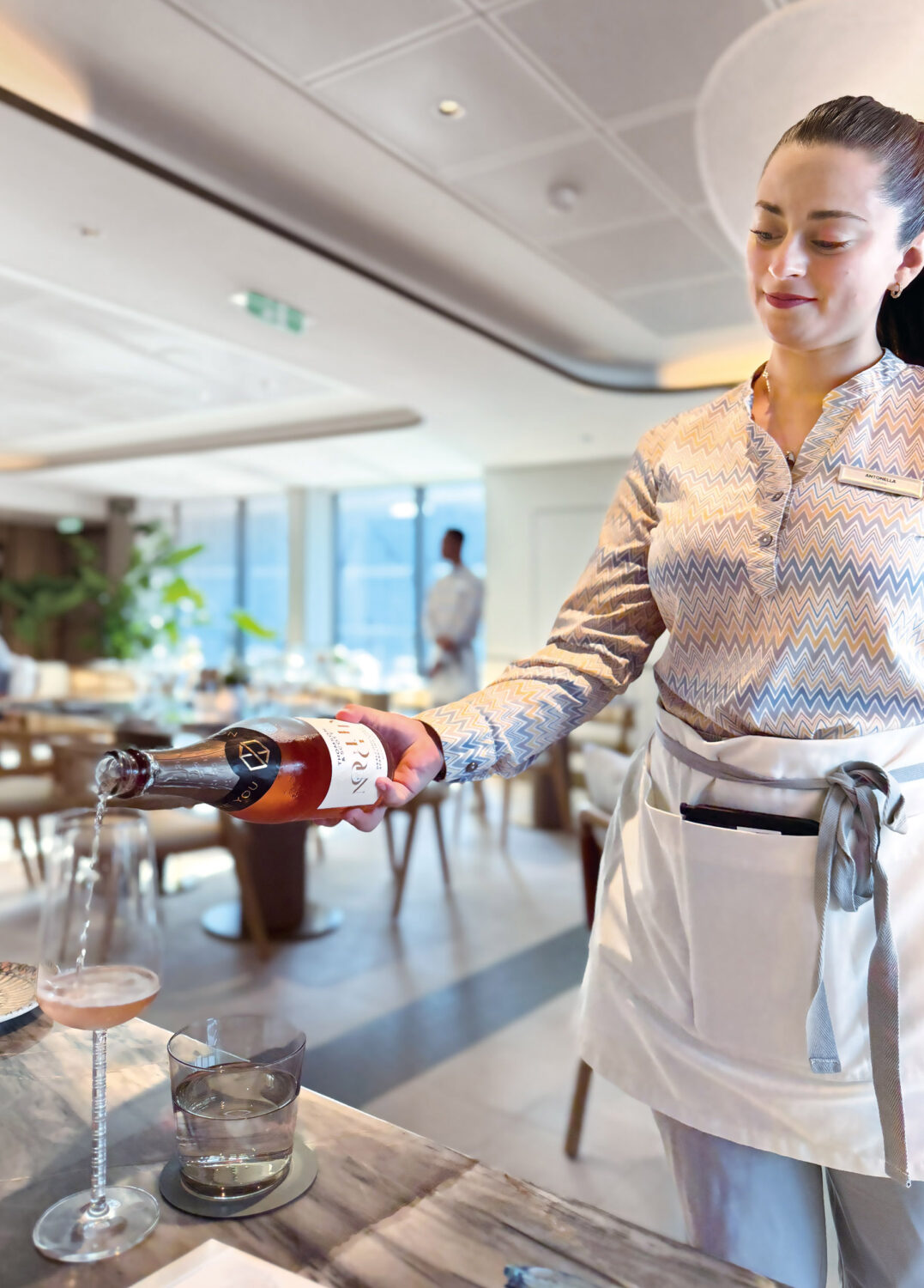 レストランは4つある。「アズール・オン・ルミナーラ」はメイン・ダイニングのようなもので、広々としているが豪華すぎず、でもフォーマル感もある空間。レストランとしては“定番”としての位置付けで、季節感とクルーズエリアなど地元の旬のものも取り入れながら、選択肢も営業時間もゆったりめ。朝食は10時半までオープンしている(予約不要・無料)。