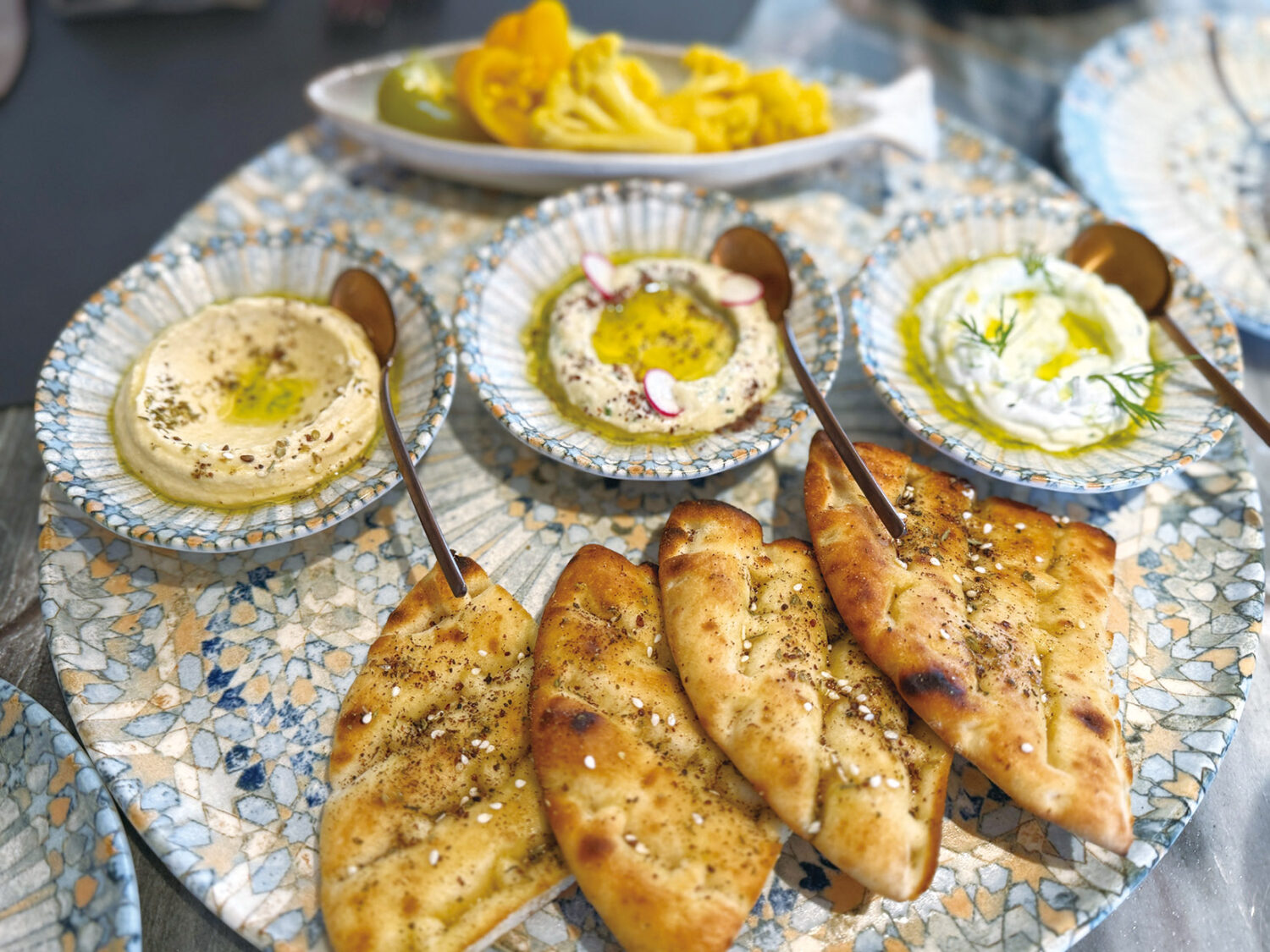 「ビーチハウス」はエジプトや中東のスパイスを使いながらもどれも食べやすい味付け。オープンキッチンに加え、後方には広々としたビーチハウスプールやプールデッキが広がる開放的な空間