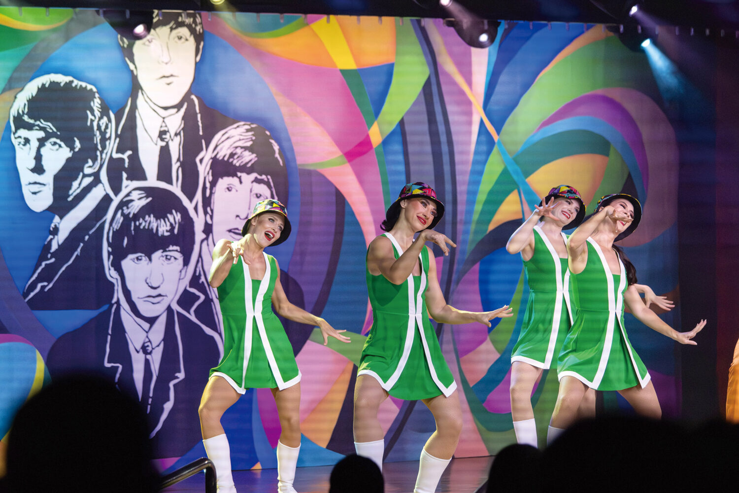 夜は、「ギャラクシーラウンジ」で今夏公開されたばかりの新作プロダクションショーを鑑賞。ビートルズをテーマにした舞台は、誰もが耳にしたことのある名曲と、70年代のファッションで時代を鮮やかに描き出した。タイトル通り、自然と一緒に「ツイスト&シャウト」するステージだった。