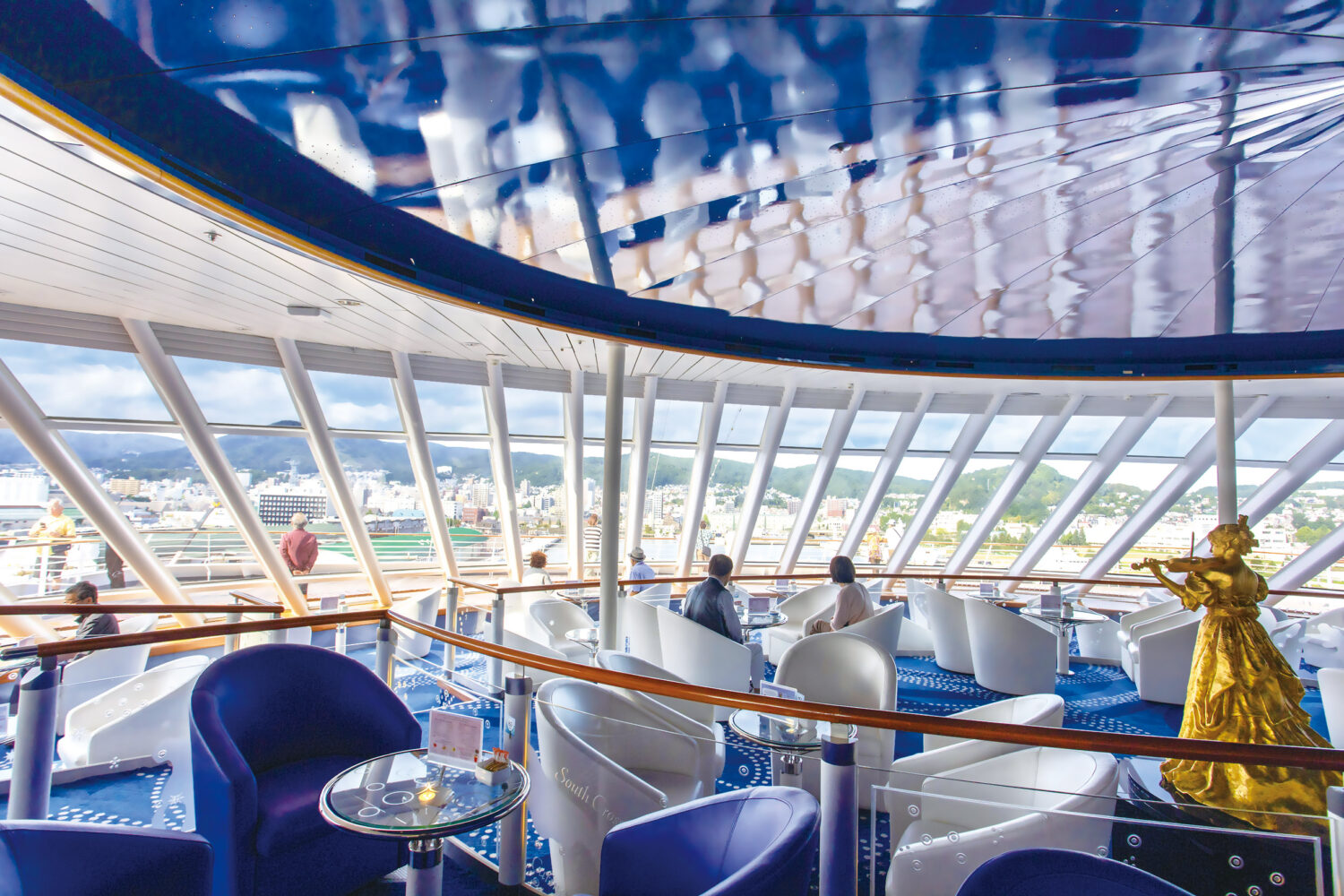 その後は「クラブ・スターズ」で、お酒を片手に語らう「クルートーク」に参加。エンターテインメント部門の若手スタッフ3名が登壇し、乗客からの質問に答える形で“ここだけの話”を披露した。ライフスタイルや、スタッフの視点から2025年7月に就航した「飛鳥Ⅲ」への思いも聞け、興味深い時間となった。締めくくりは「マリナーズクラブ」へ。シグネチャーカクテルを手に、リクエスト曲を奏でるピアノの音色に耳を傾けながら、夜が更けた。