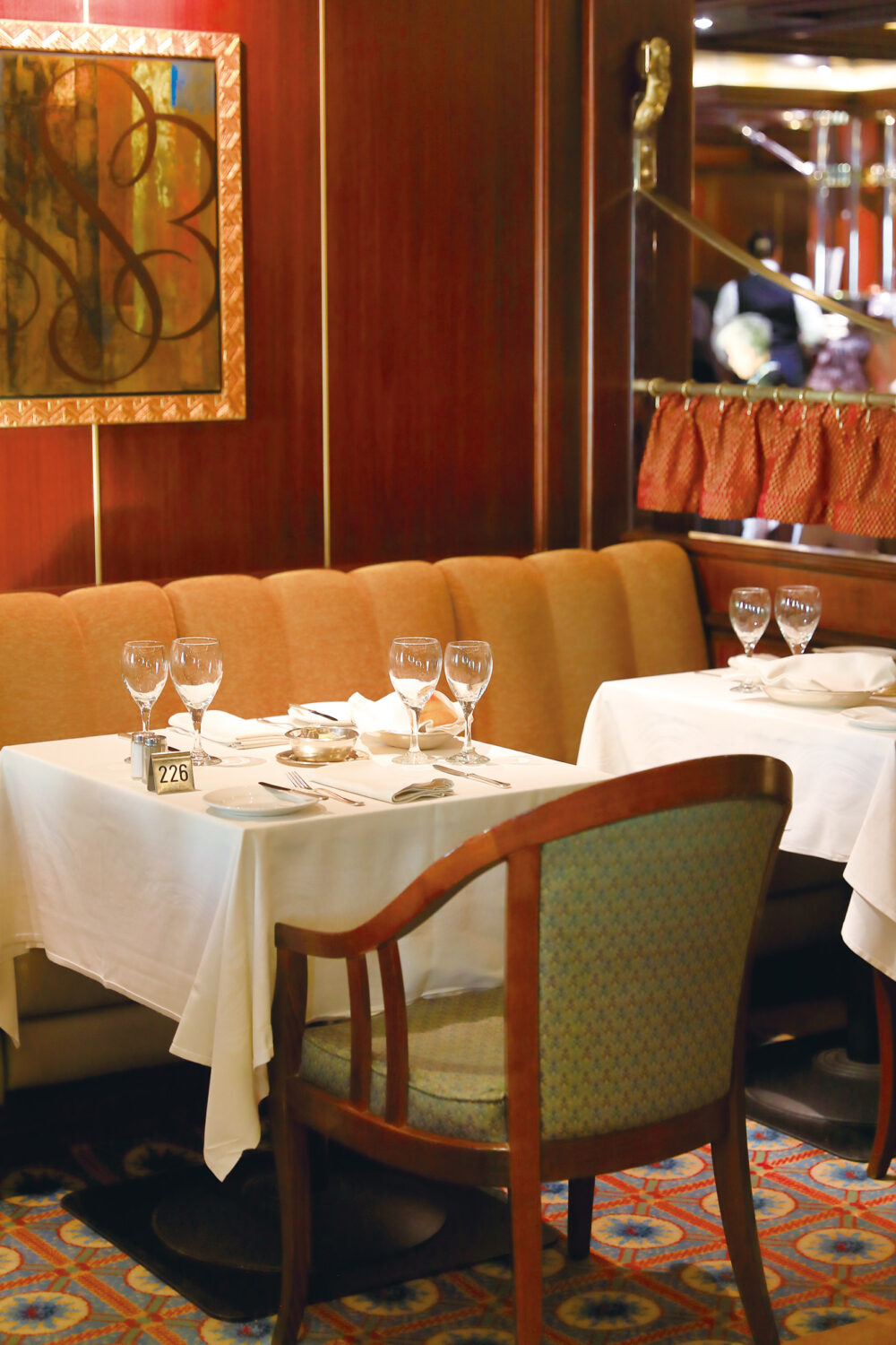 船内には、インテリアが異なるメイン・ダイニングが5カ所あり、さらに特別感のあるイタリアン・レストラン「サバティーニ・イタリアン・トラットリア」(有料)、カジュアル・ダイニングなどがあり、エレガントな雰囲気で多様な食事を楽しめた。日本発着でのみ提供される和食メニューもあり、朝食では、ゲストのアイデアで定番になったオムライスもおいしい。