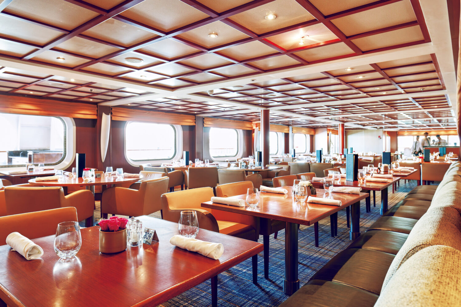 2隻の特徴は、全室スイート仕様のラグジュアリーな客室。最小でも25平方メートルとゆとりの広さを確保し、バスタブやダブルシンクを備え、居住性は抜群。24時間頼めるルームサービスにはうどんやそばなどホッとする味も揃う。