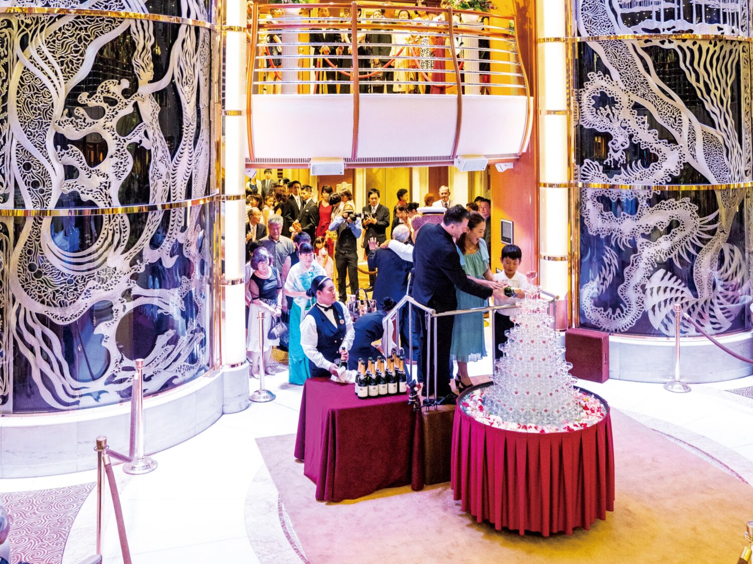 フォーマルナイトには、アトリウムで華やかなグラスタワーが登場する